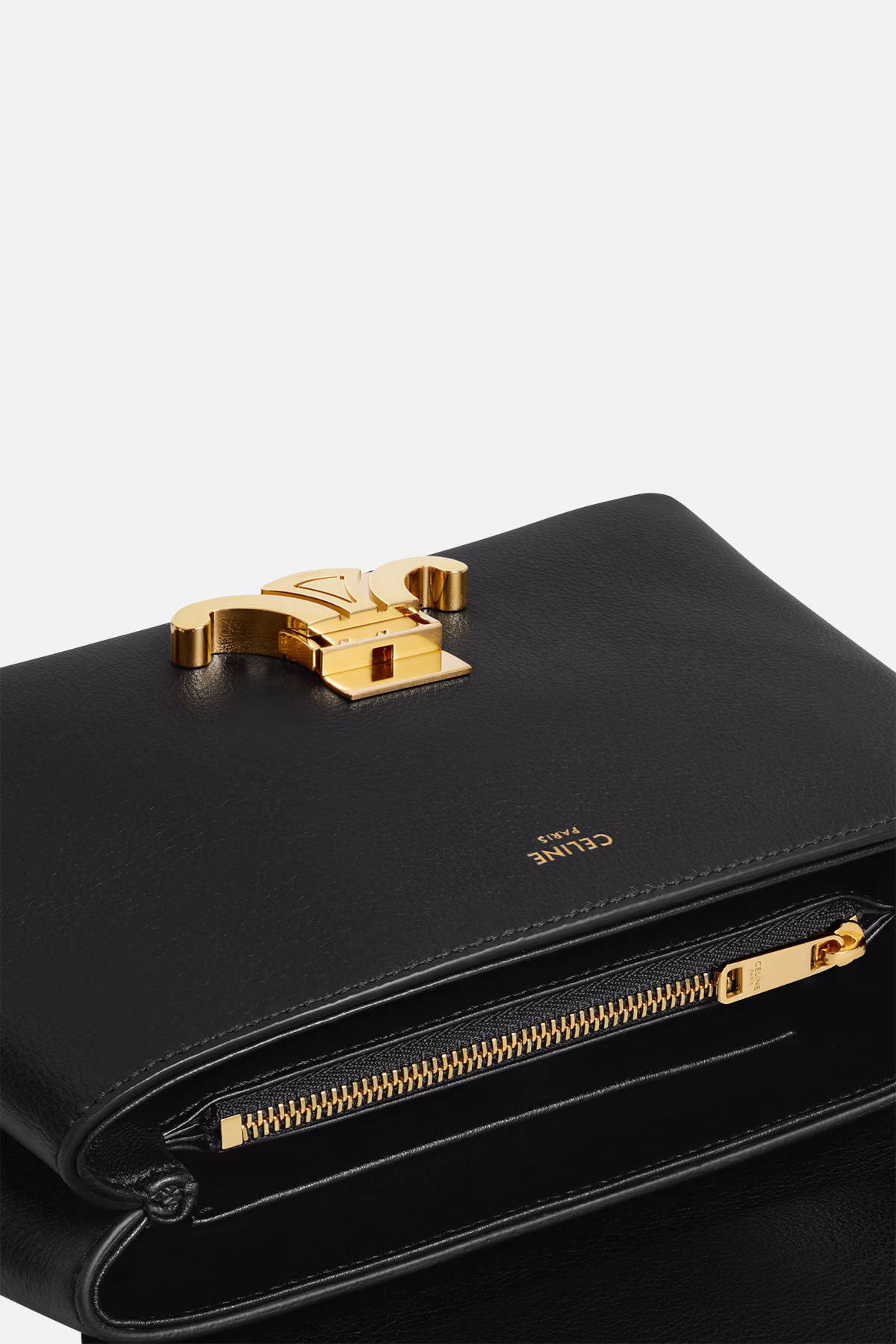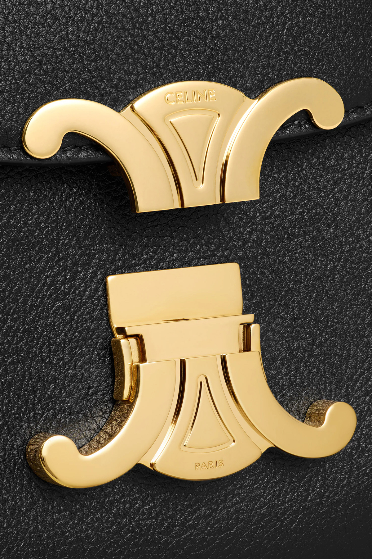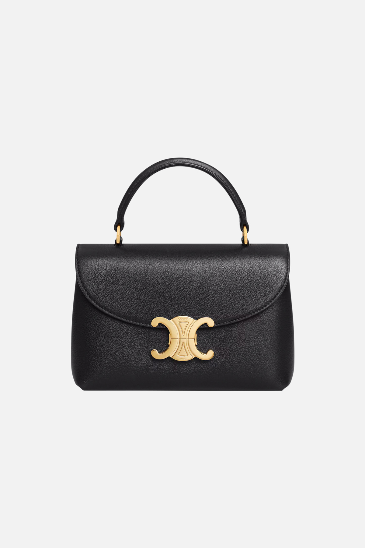 Celine Teen Nino Bag in supple grained calfskin with gold finishing and Triomphe metallic closure. Lambskin lining with two main compartments; two inner flat pockets and one inner central zipped pocket. Removable and adjustable shoulder strap. Includes dustbag and authenticity card.